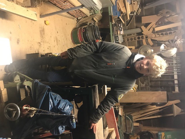 Volgende week zaterdag, als Sinterklaas aankomt, draait het Klaverblad niet, hij staat stil. Dan ga ik de wieken versieren met het mooimakersgoed. Dat zijn een soort engelen van hout en bloemen en sterren. Ik vind het heel leuk om in de molens te werken.”